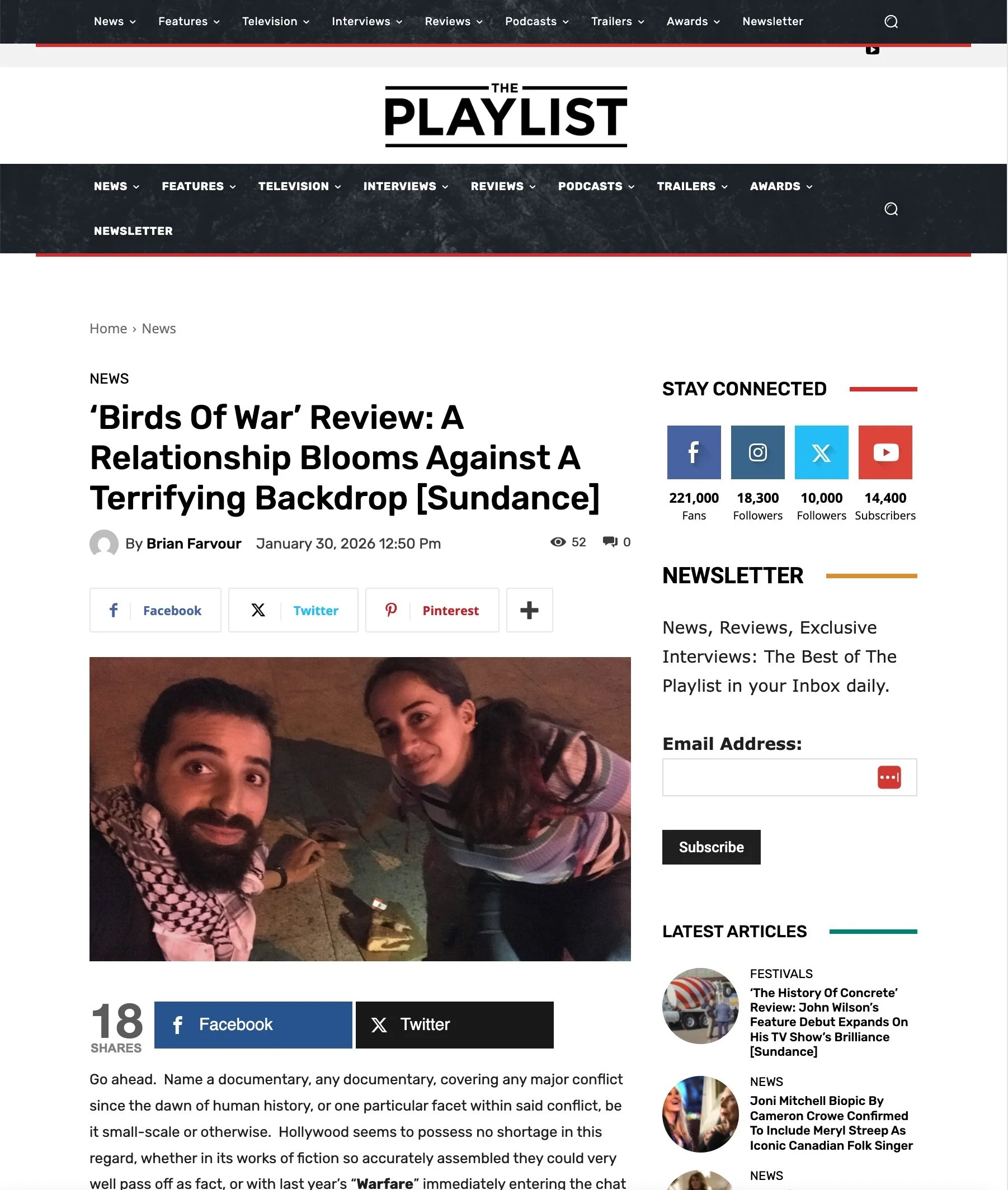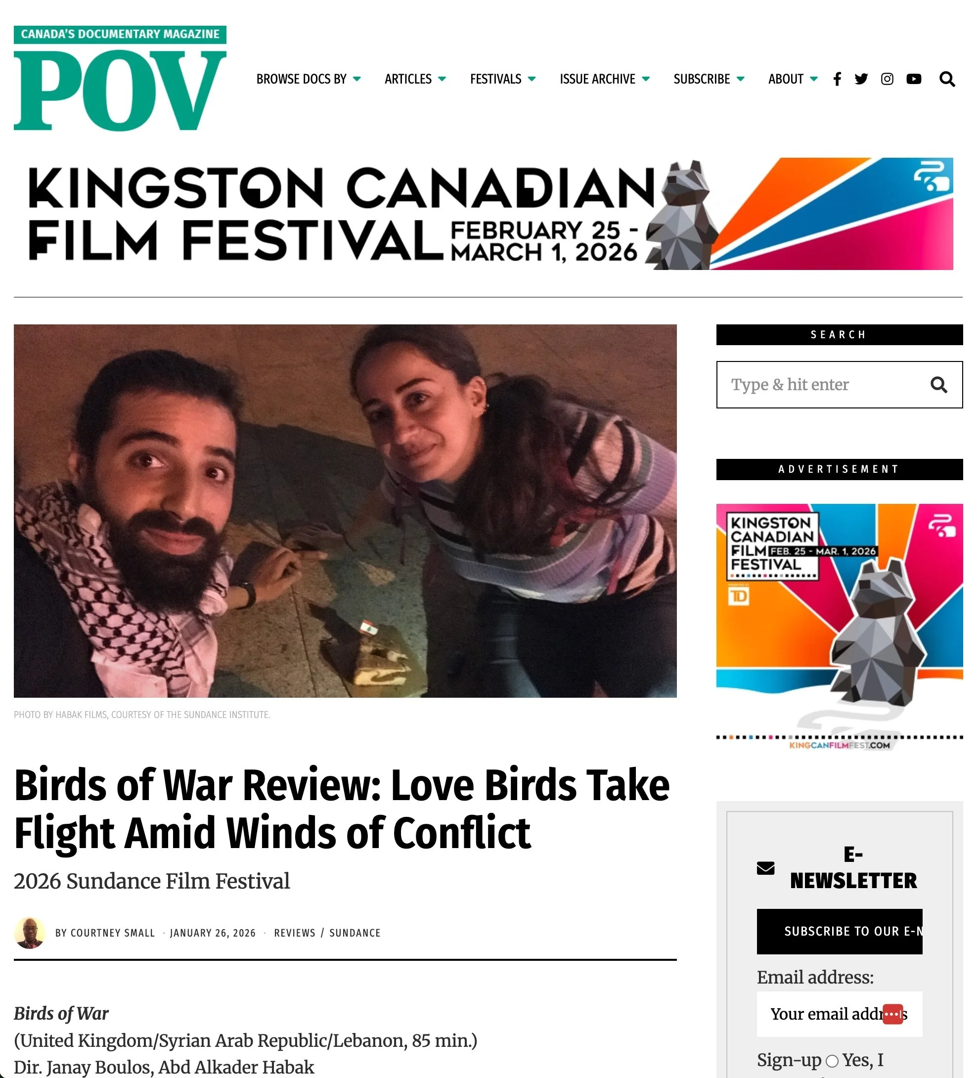 Although they wouldn’t realize it yet, this text exchange begins the love story of filmmakers Janay Boulos and Abd Alkader Habak. With international journalists banned during the Syrian civil war, outlets like the BBC must rely on activists on the ground to provide footage. Trading text messages and voice notes between London and Aleppo, Boulos tasks Habak to capture editorially approved stories, but, gradually, theirs shifts from a working relationship to something more. Immersive and emotional, Birds of War traces their parallel lives — Boulos becoming disenchanted with journalism, Habak facing the inevitable fall of Aleppo — as they grow closer. As both Syria and Boulos’ homeland of Lebanon undergo dramatic developments, the couple reflects on the sacrifices made because of politics and war, but also on what they’ve gained.” - Sundance Film Festival